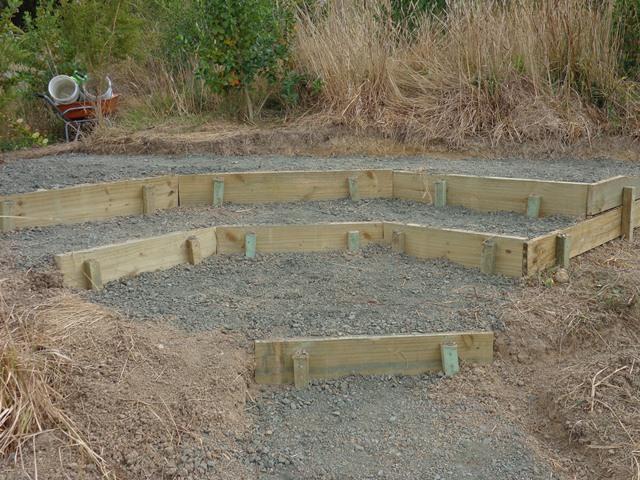 Once the step was boxed up, the soil was smoothed out to make the surface even.