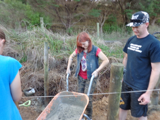 Part of the team worked on wiring and nailing the roof into place, while others worked on joining up the walking track to the hut entrance.