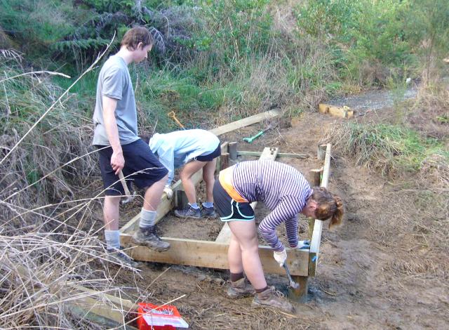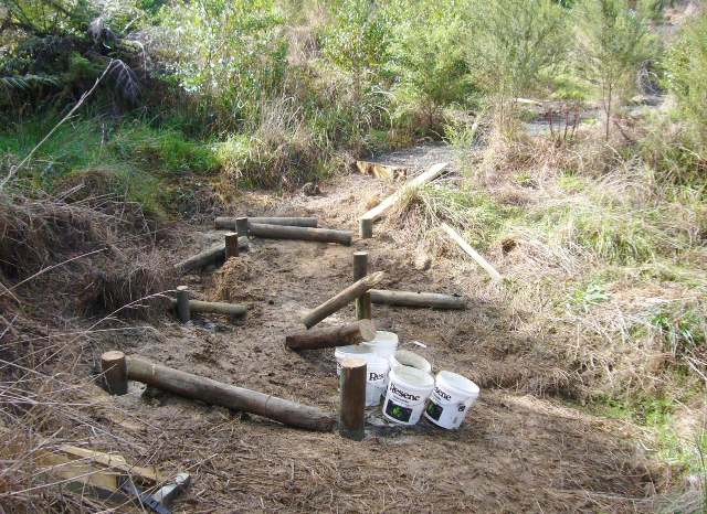 The team had three major tasks.  First was to complete approximately 100 metres of track, from the point that the previous group had finished, up to the main road.  This would now provide access to the DofE Hillary Award Grove from four different points.  The second task was to build a boardwalk over the headwater of the CUE Haven stream.  The last job was to start work on refurbishing the old water tank into a DofE Hillary Award Grove feature.