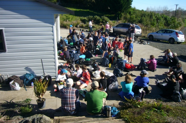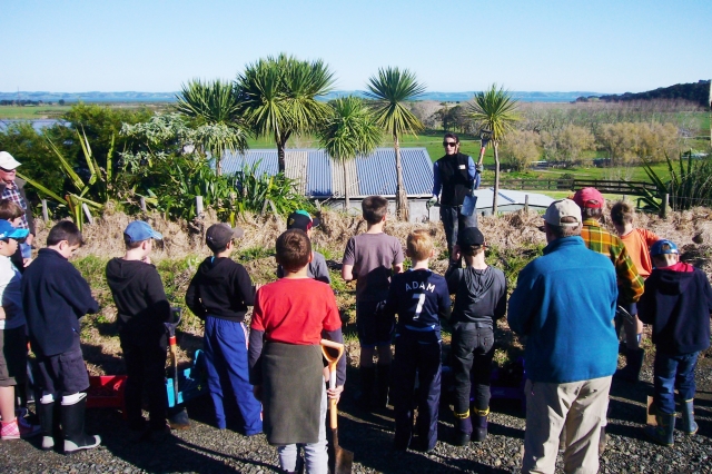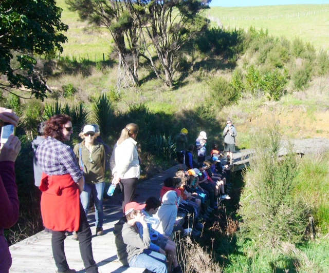 The St Kentigern School group arrived just after ten to a perfect sunny day and assembled for morning tea and a brief talk introducing them to the CUE Haven Restoration project.