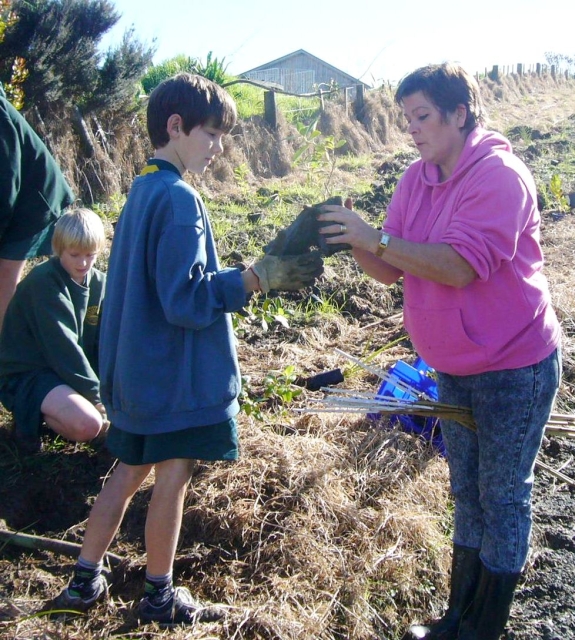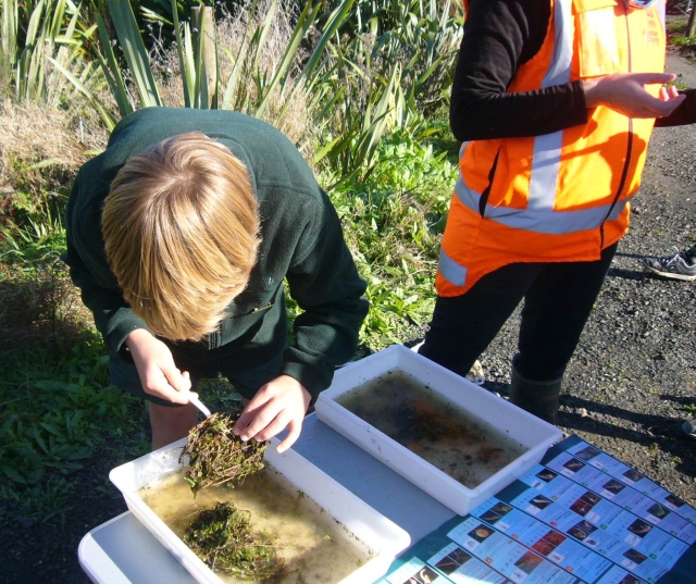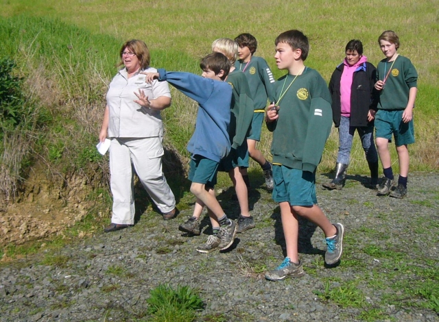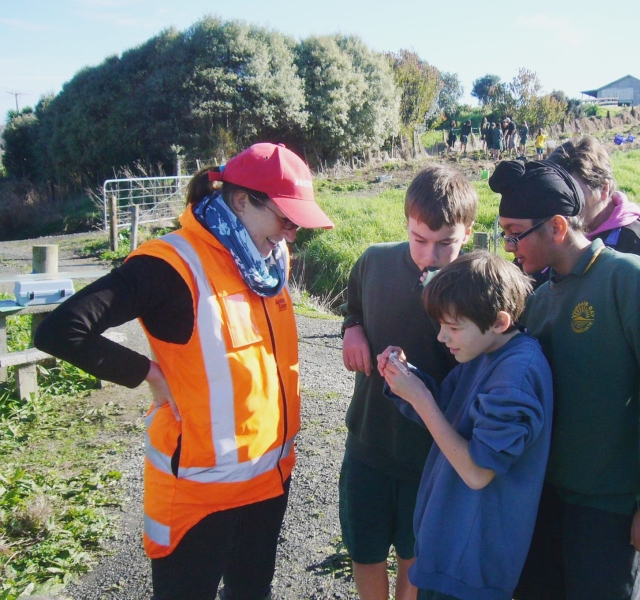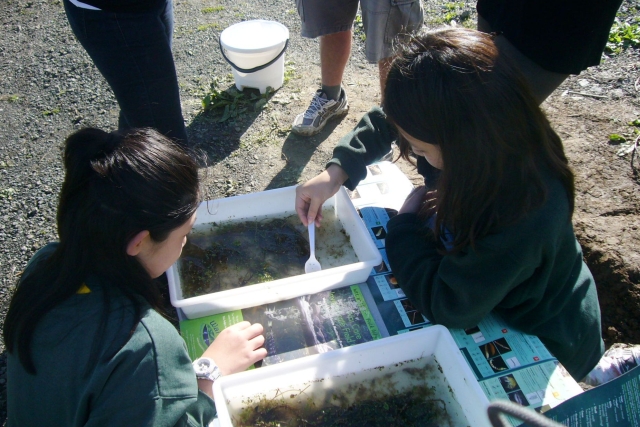 To start off, one group went to the planting site with Tom, another group joined Rachel Griffiths, Auckland Council’s WaiCare Community co-ordinator, to learn about water quality issues and to conduct field testing and observations. The third group did a field trip with Morag Vasilaki, Auckland Council’s Education for Sustainability Advisor, to learn about observing nature and what to look for on a nature walk.
