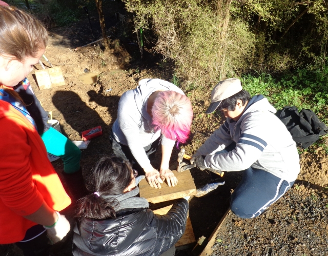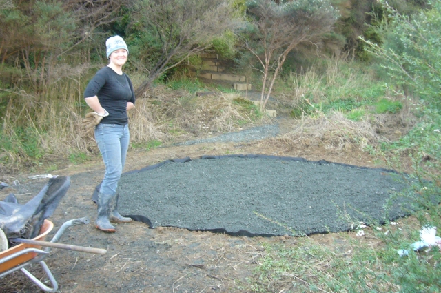 The next morning Elizabeth joined the team and she worked with part of the group preparing the ground for a mosaic of the DoEHA logo which will mark the start of the walking track and serve as a welcome to the Grove.