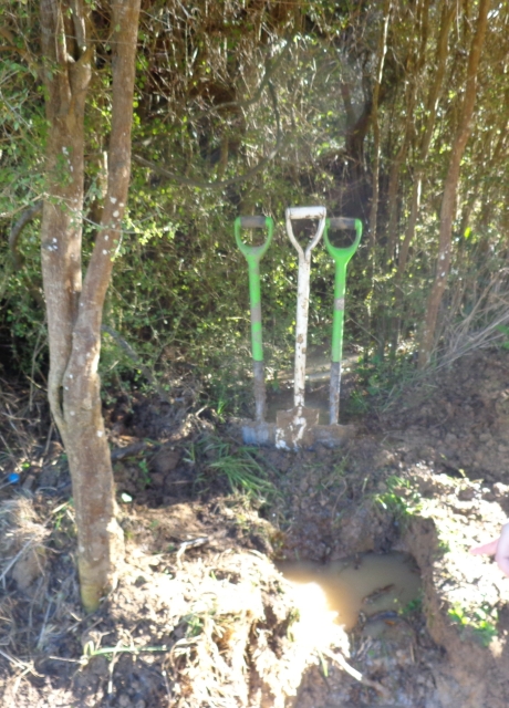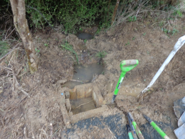 The next job was to dig out the sump and culvert—a messy and muddy job.