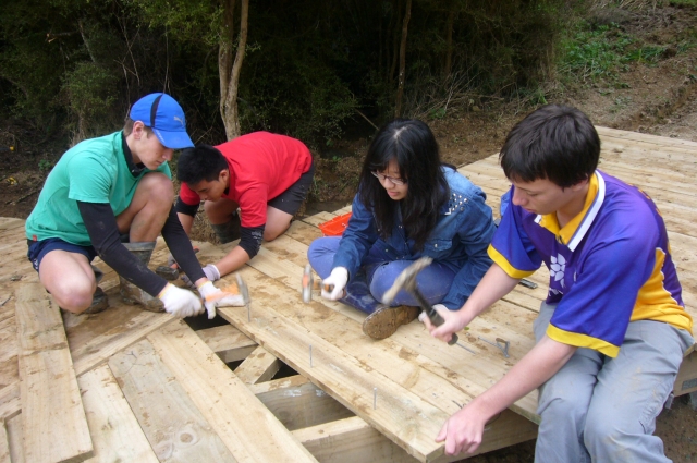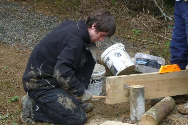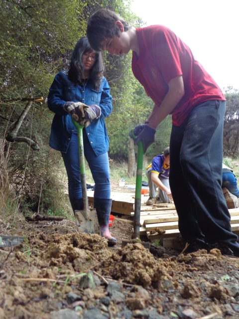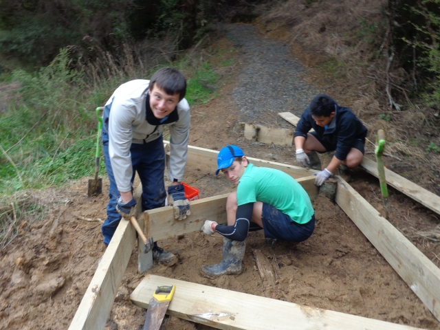 During the summer and fall, three groups of gold award participants worked on putting in a walking track to provide access to the Grove. This week’s group improved the track by putting in a culvert to improve drainage, building a boardwalk across as wet spot on the track and starting the first of the artwork projects.