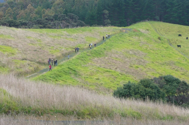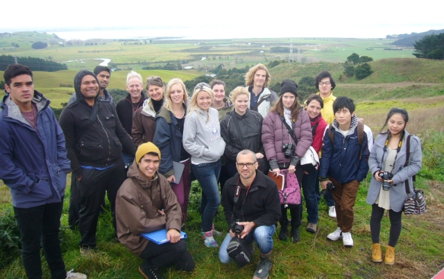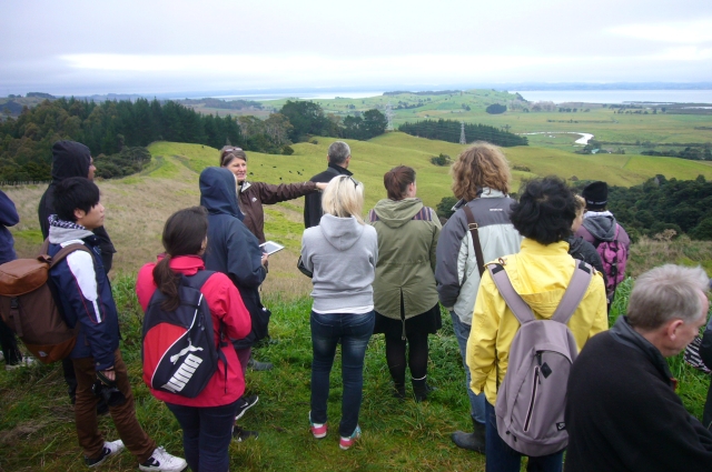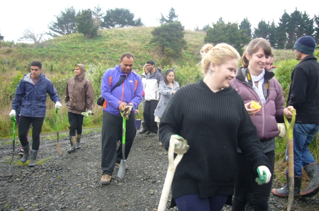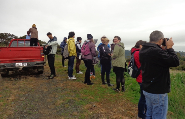 Today Jeanette Budgett, senior lecturer from Unitec’s School of Architecture, brought out a group of year three architecture students for a site visit. The idea was for the students to learn more about what we are trying to accomplish and to see the physical geography of the site in order to come up with creative ideas for the CUE Haven visitors/education centre.