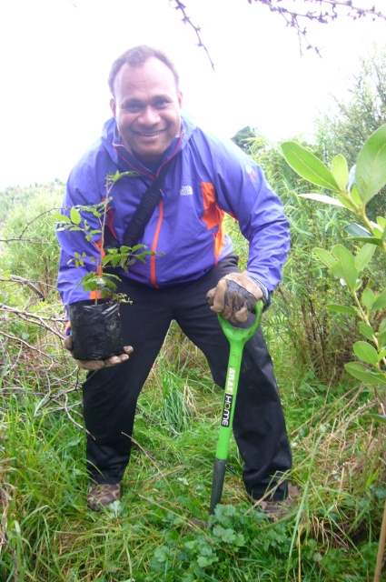 The group did in-fill planting of long-lived trees such as totara, puriri, titoki and taraire. These trees will live for hundreds of years, so before doing any architectural work, the group has already made a long lasting contribution to CUE Haven. Thank You for your help today.