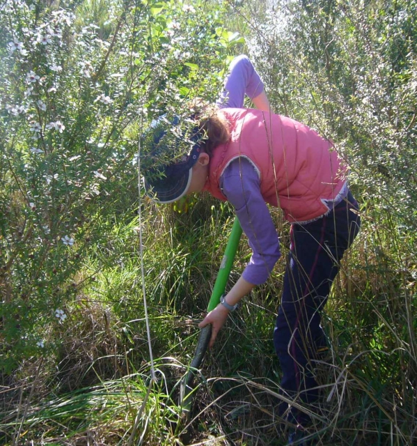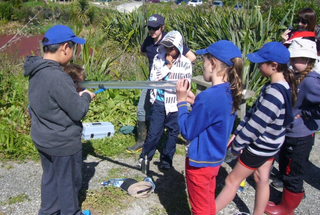 The Waicare demonstration was conducted in the main wetland area of the property. Sophie explained water quality issues and how the water at CUE Haven affects the water in the Kaipara Harbour.