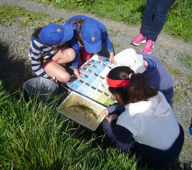 Sophie collected water and vegetation samples from the ponds and put it into shallow white trays to give the students a chance to study the pond life. She explained the different kinds of creatures that can be found in fresh water ponds and gave the students a chance to see how many different creatures they could find and identify using a field identification chart.