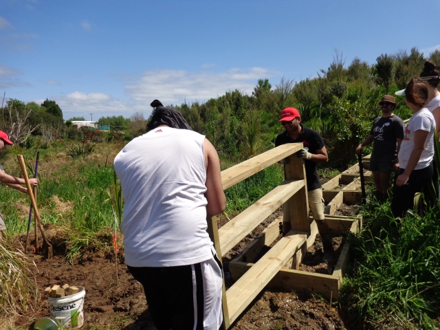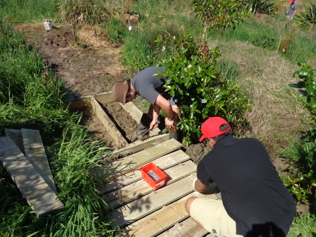 The next group worked on assembling the boardwalk sections that were then positioned along the wet sections of track.  In just a few hours the team managed to build and install the frames.