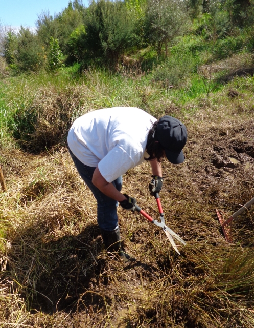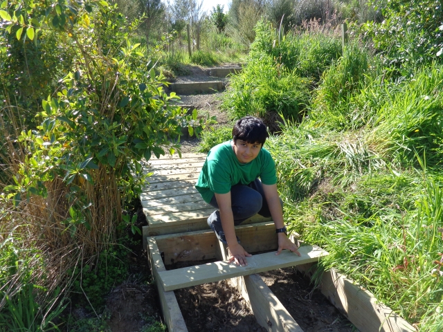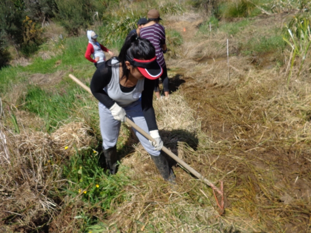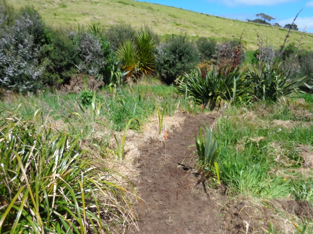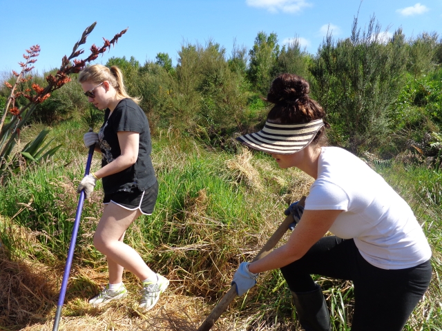 It was a perfect spring day and it is now too late in the year for tree planting so we worked on the walking track in the wetlands. After a safety briefing and an overview of the tasks for the day, we hiked up to the walking track and went to work.