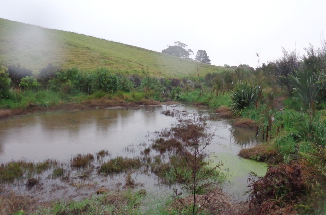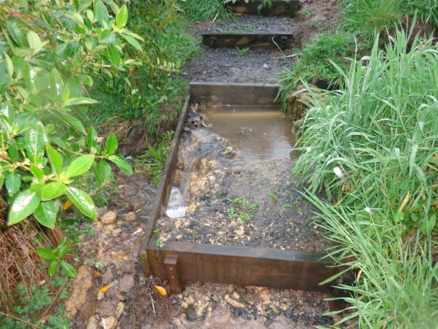 In the past few weeks we have had unusually heavy rain and the volume of water flowing through the CUE Haven catchment has taken its toll on some of our walking tracks.  One of the tracks circles a pond and overflow from the pond after an 85mm downpour last week overwhelmed the drainage system and flooded a section of track.