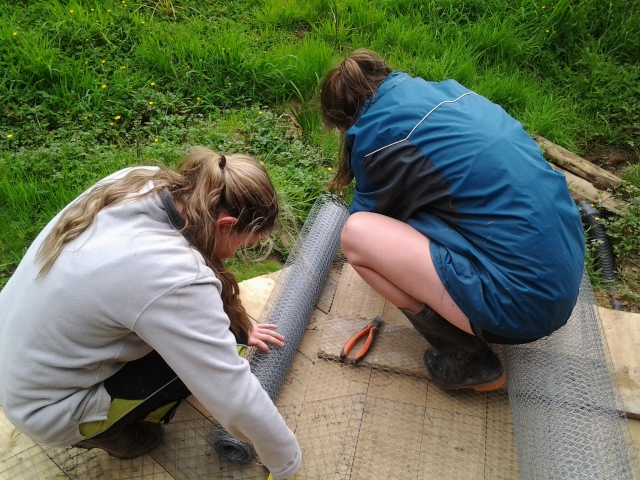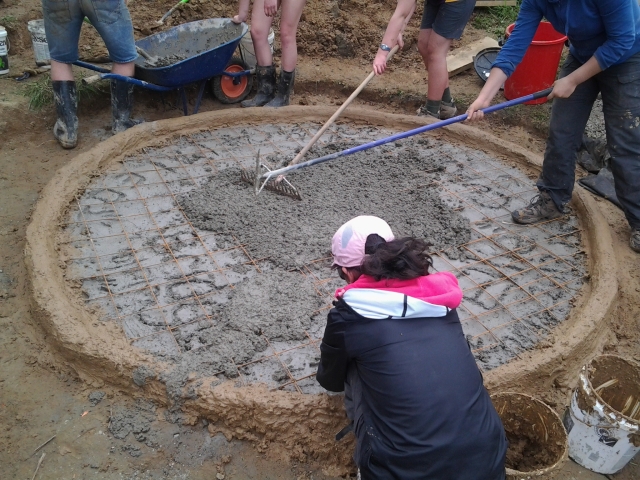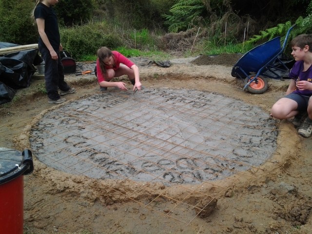 Once the first layer had hardened sufficiently, the second layer of concrete was laid. The first step was to put down wire mesh to secure the second layer.