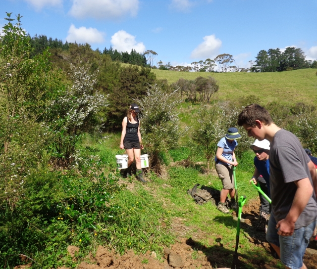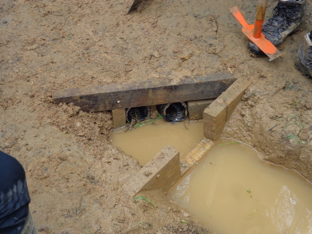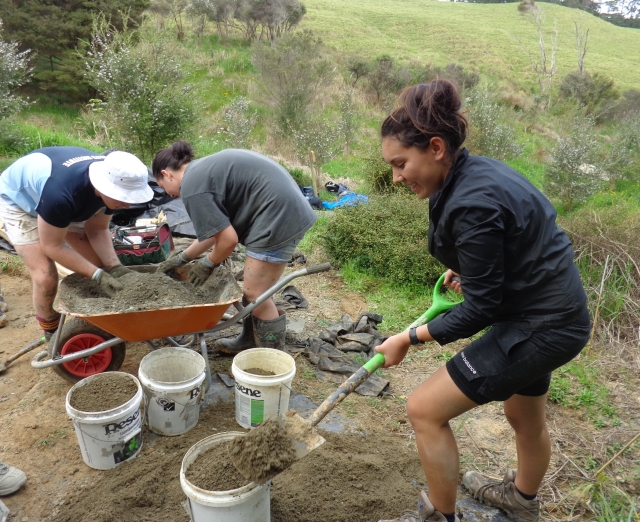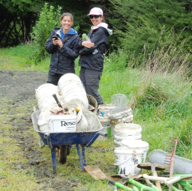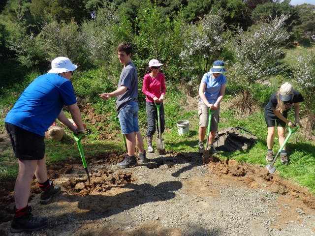 Several team members worked to enhance the drain channels and installed a culvert and drainage system. It was a messy job that required a lot of digging, but the walking track is much better as a result.
