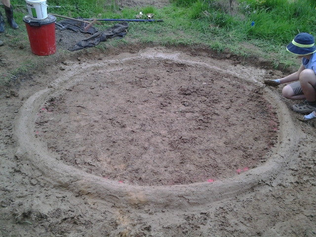 Once the area was dug out and smoothed, the actual area of the mosaic had to be marked out.