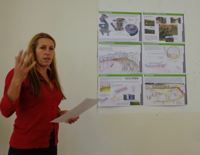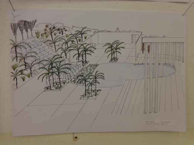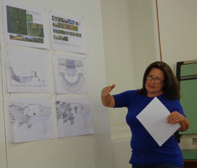 This morning we met at the Unitec Landscape Design studio with Ian and students Alicia, Alisa, Eleanor, Gary, Jala, Sharon and Val so the students could present their designs. Each student explained the design area they selected and explained the concept of their design and what they were trying to accomplish. They showed drawings and discussed various design issues.