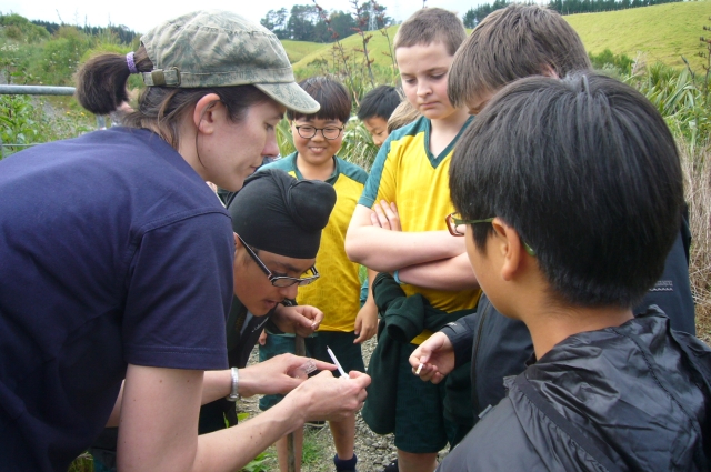 Marnie had the students help with tests to check the levels of oxygen in the water samples.