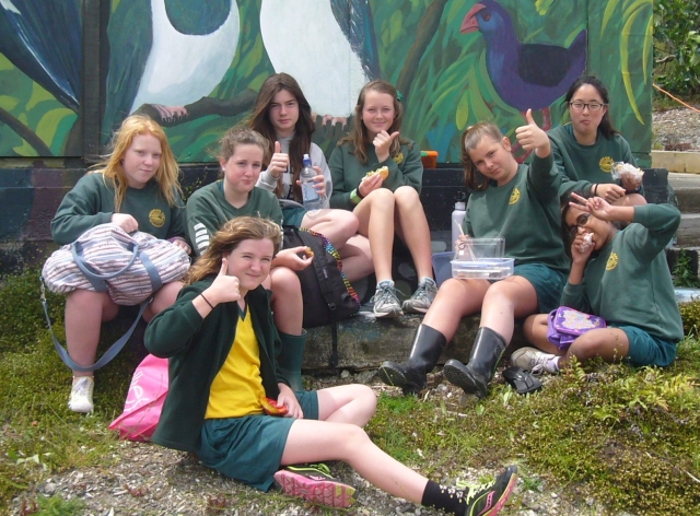 The weather forecast was for intermittent showers and that turned out to be exactly right! The students arrived at around ten and the Nestle Hot Chocolate generously sponsored by Nestle NZ was a welcome warming treat during morning tea. Thanks Nestle!