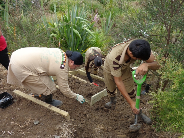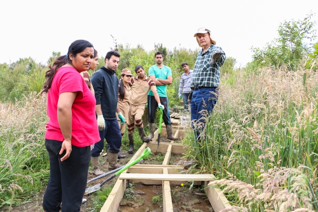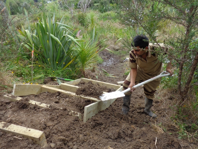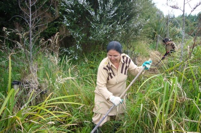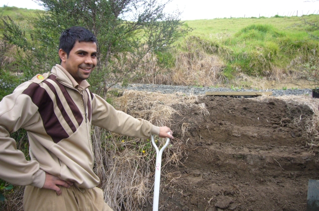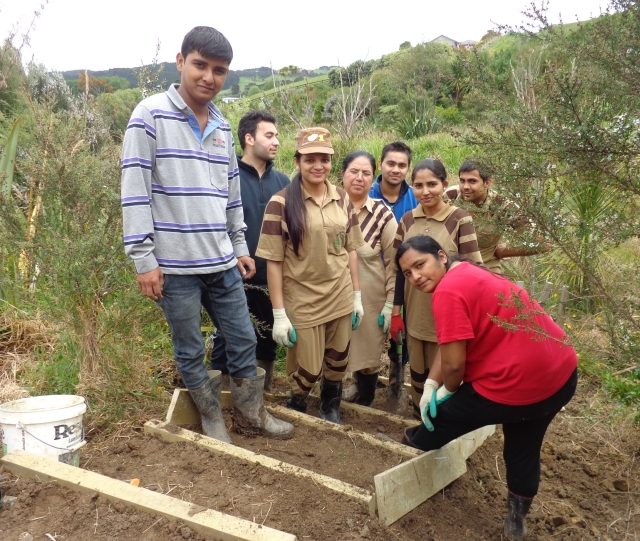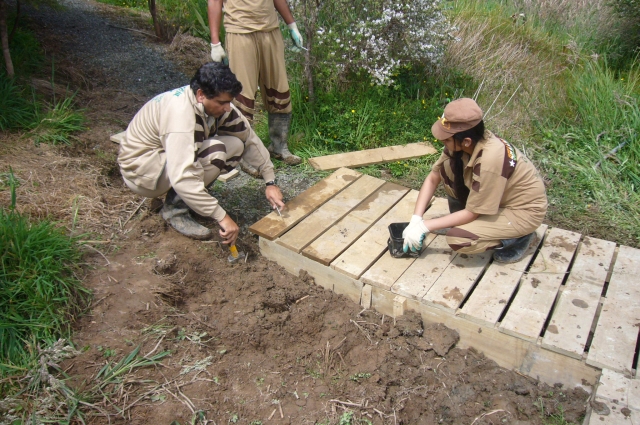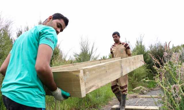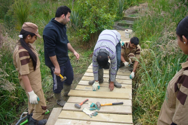 The New Zealand branch of the Shah Satnam Ji Green “S” Welfare Force made a major contribution to CUE Haven and thanks to all their efforts we exceeded our planting goal this year. We have become good friends with the group and today some of them came out to help work on a boardwalk walking track we are building through the wetlands.