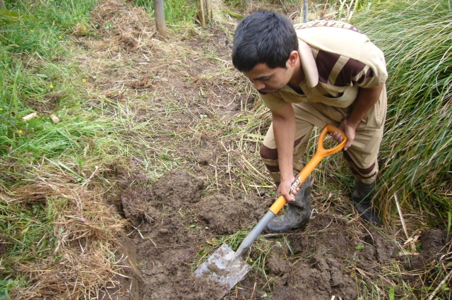 Aman, Ankush, Bharpoor, Dalveer, Pooja, Ranjit, Simarpreet, Suhas and Veerpal arrived about nine. After morning tea, and booting up in waterproof gumboots, the team set off to the work area.