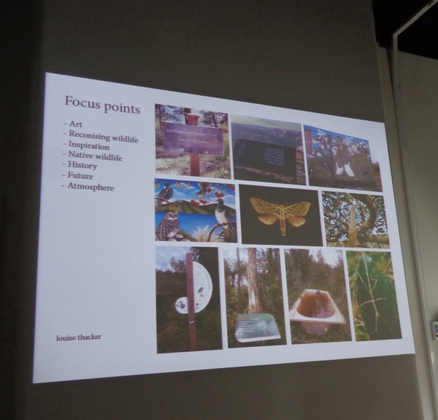 Her ultimate design is beautiful signs which will educate future visitors about the trees and animals around them and guide them to look for what is not immediately obvious. Her signs and photos include inspirational quotes and also tell the story of the history of the property, for example, by retaining the old troughs used to water the cattle when the property was a farm.