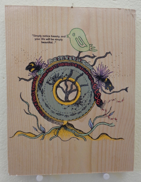 Her designs make use of inspirational quotes which she is proposing to place on beautiful signs which will have lovely artwork and will require to visitors to study and contemplate the quotes and the symbolism of the design.