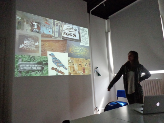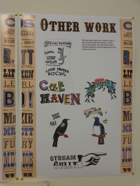 On 13 November we returned to the Unitec Graphic Arts department to view the students’ final designs. Several of the students had produced actual signs or artwork based on the previous meeting’s discussion.
