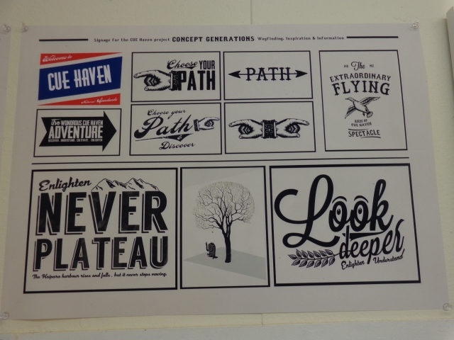 […] last year, a group of second year Graphic Arts students from Unitec came out to CUE Haven as part of a project to develop visual communication using words and text to enhance the […]
