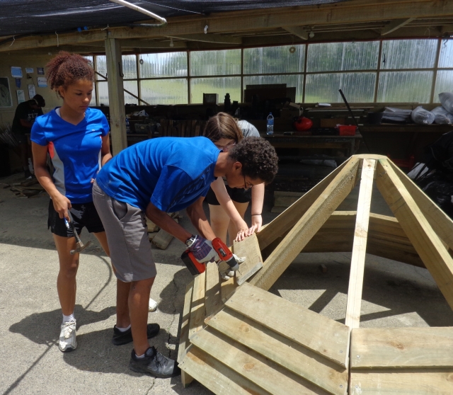 This week’s team spent some time brainstorming how to build a more permanent roof structure and once they agreed on a plan they went to work building it.