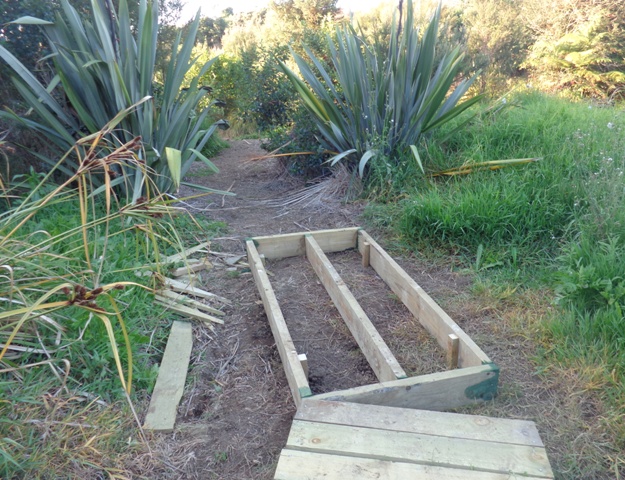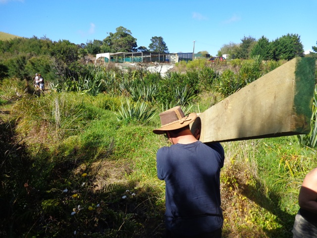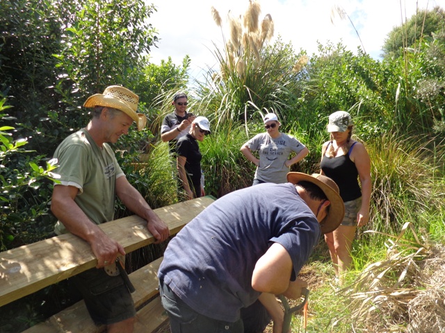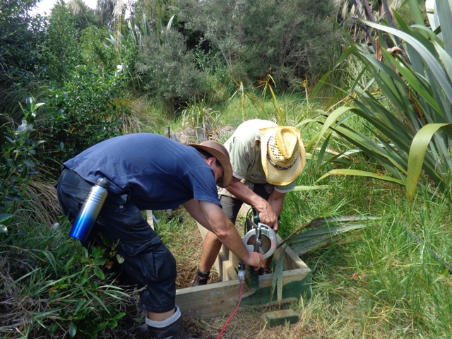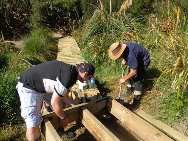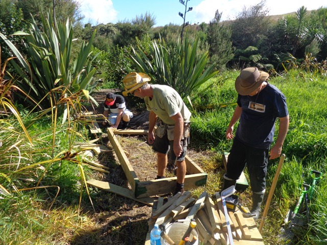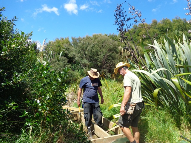 Building the boardwalk frames involved assembling them from heavy timber, and then pegging them into the ground after ensuring that everything is straight and level.