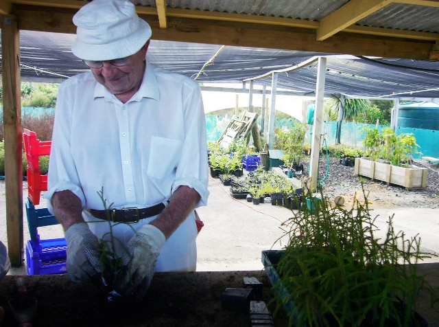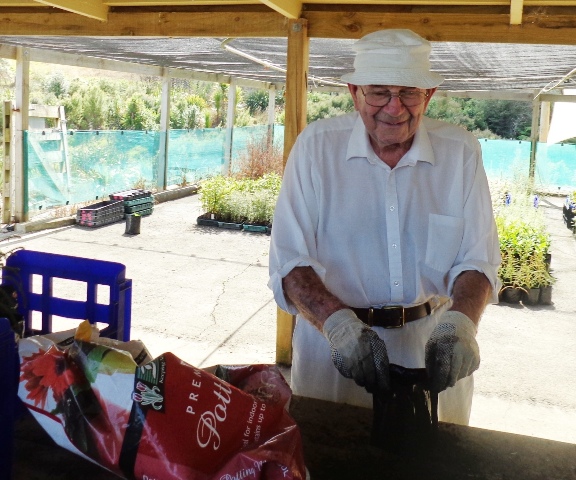Doug volunteered to work in the nursery and help with potting up the seedlings into bigger pots. The potting up work is very important as the seedlings outgrow their pots and can become root bound which will impede further growth or even kill the plant.