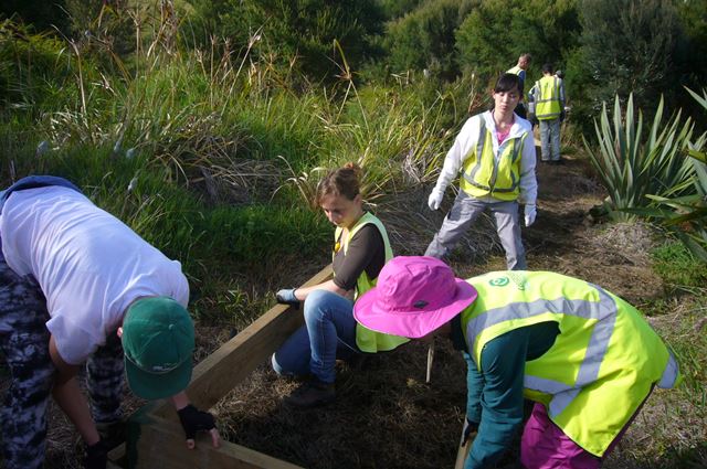Today a group of international volunteers were at CUE Haven to help work on the wetlands boardwalk project.