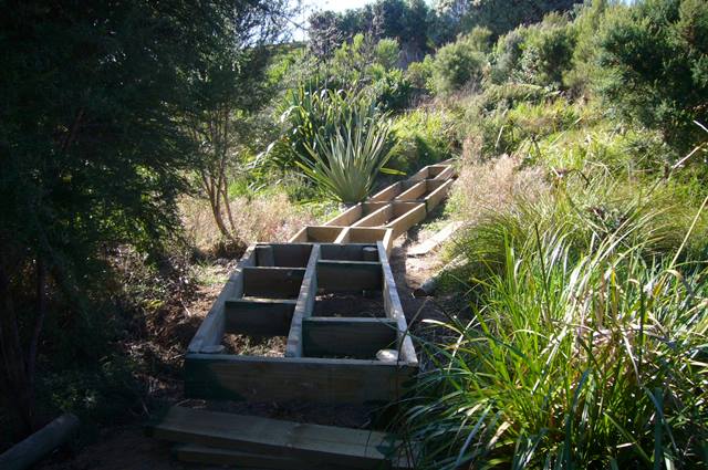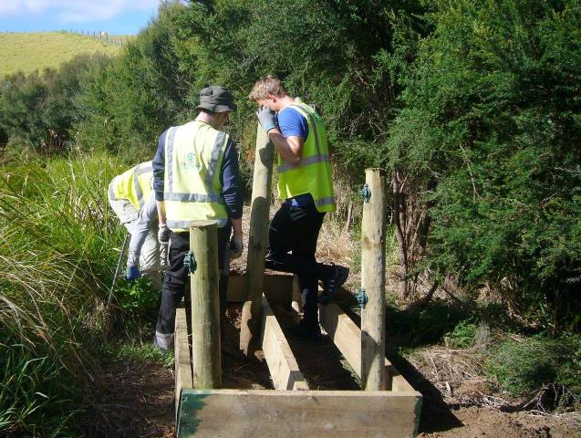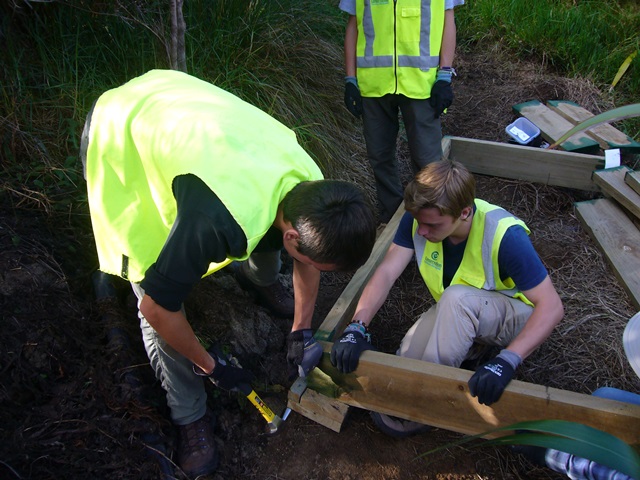 The planned work for the day involved building boardwalk frames and securing them in place and also building a small bridge over a stream that is dry during the summer months.