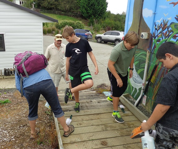 Today sustainability teacher, David Walker, of Murrays Bay Intermediate School in Auckland brought out a group of twenty-seven Year 8 students for a day of learning and exploration. Karen Robertshaw of Bayes Coachlines drove the group out. This is the third time David and Karen have brought a group of students to CUE Haven.