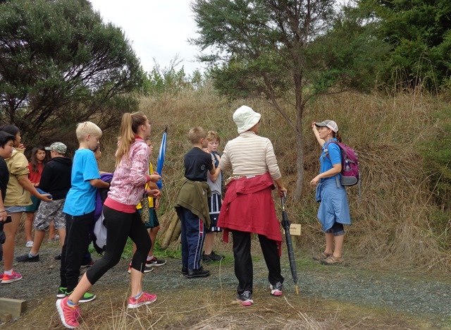 After the groups finished planting, Morag led them in an exercise to learn about the environmental history of New Zealand. Morag created a timeline which showed the plants and animals and how they were affected throughout history by human activities.