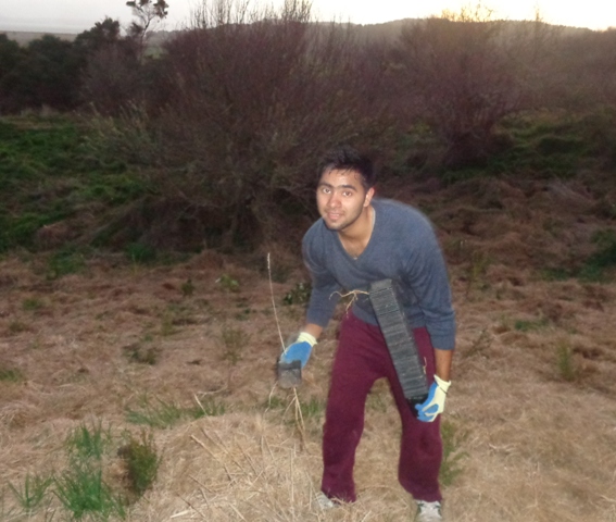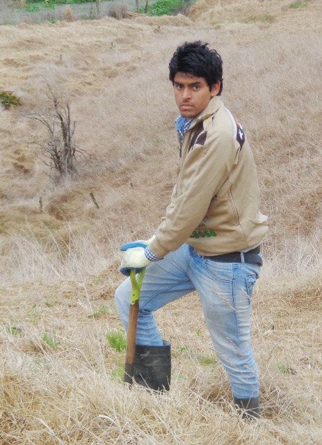 Suhas took a break from planting and assisted Tom and Rodney in unloading the plants.