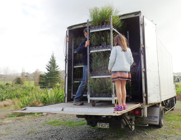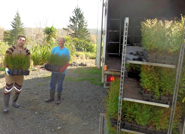 Throughout the planting season we get regular shipments of plants from Scrub Growers Ltd. To make sure that the team had enough plants to keep them busy for the weekend, our nurseryman, Rodney, assisted by his daughter Rita brought up a supply of plants on Saturday morning.