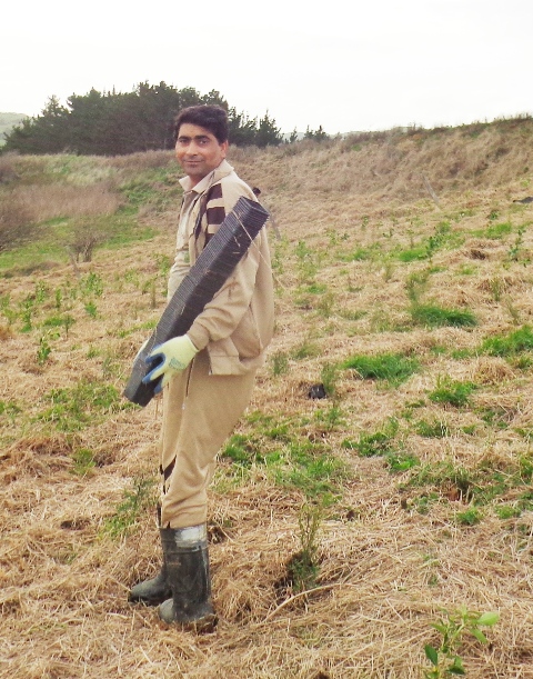 The rest of the team continued on planting by the area where they had planted last weekend. They started in a steep hilly section but then moved into flatter, smoother sections and made rapid progress.