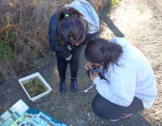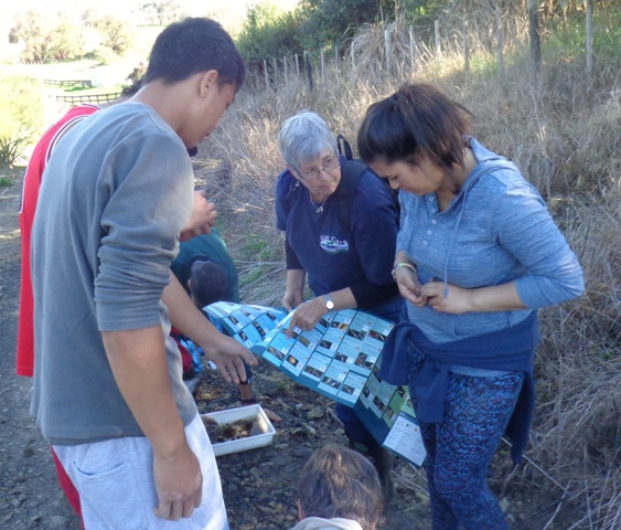 They also studied samples of water to identify macroinvertebrates living in the wetlands. Shelley and Dianne had brought charts and magnifying lenses to help the students study and identify the creatures.