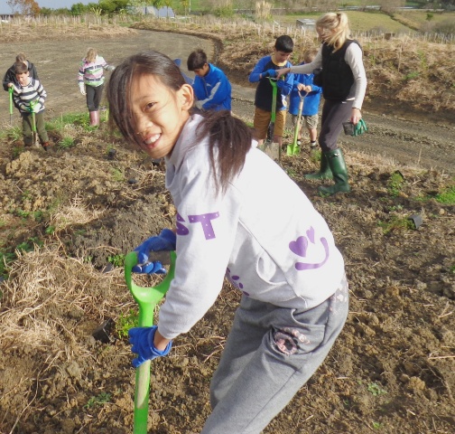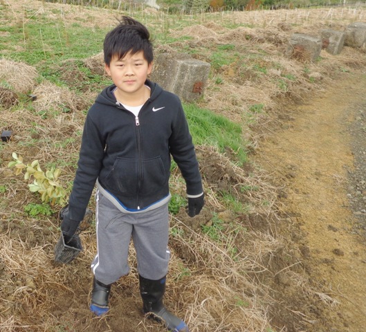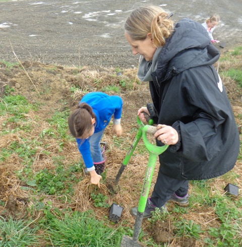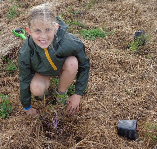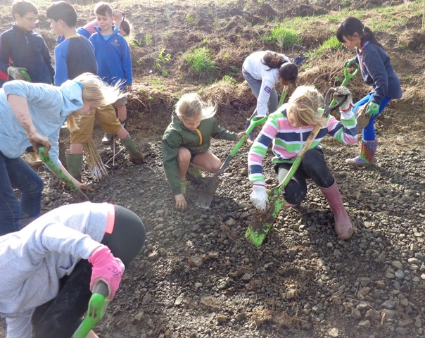 We took a short walk up to the planting site where Tom gave a planting demo and then the students went to work.