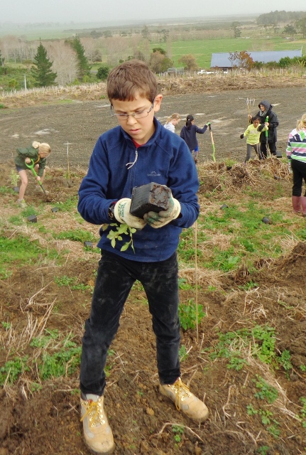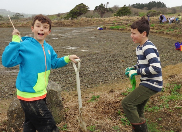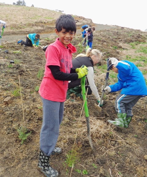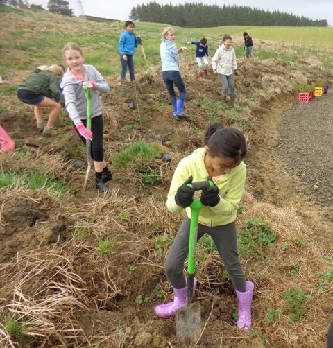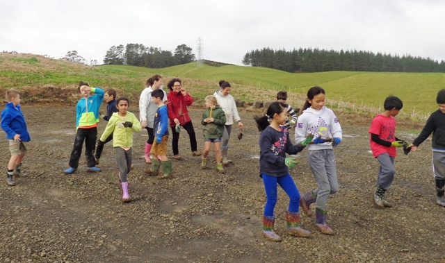 Today a group of very enthusiastic Year Five and Six students from Ficino School in Auckland visited CUE Haven. We planted trees and Auckland Council WaiCare and WasteWise professionals got the students involved in hands on environmental learning.