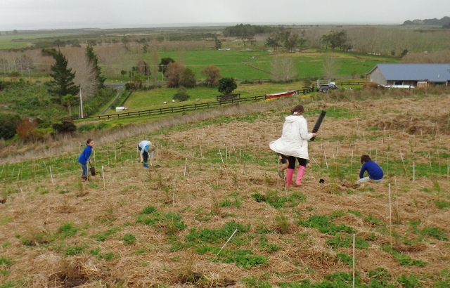 The weather alternated between sunny, windy and light showers but the students coped well and in about an hour planted 202 trees. A fantastic effort!