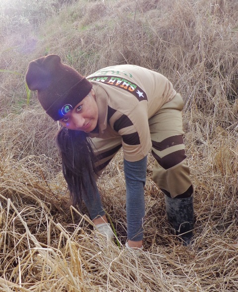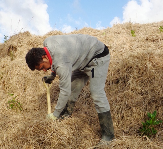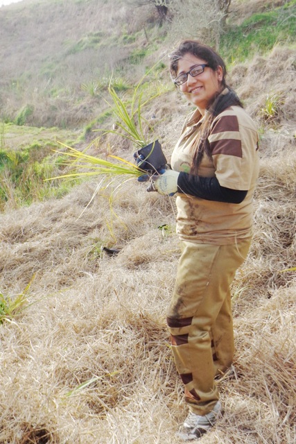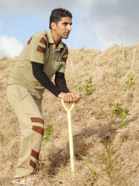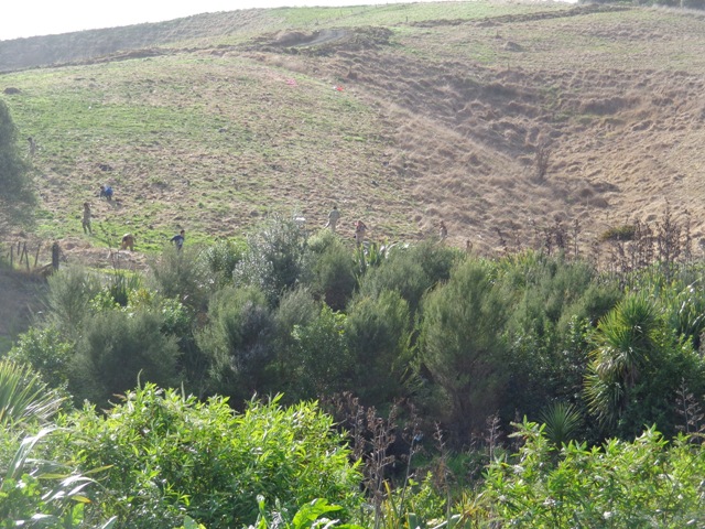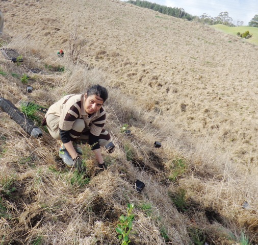 This week the group continued working on the steep gully. This is the most difficult planting we have done so far as the ground is steep and uneven and the dead grass is very long. Nevertheless, the group coped very well and planted a huge number of trees before the end of the day.