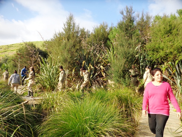Some of the team members live in the city and they arrived a little earlier than the group driving up from Manurewa, an hour farther away. So while waiting for the remainder of the team to arrive, Mahrukh took the early birds on a walk around the recently completed wetlands boardwalk.
