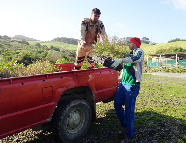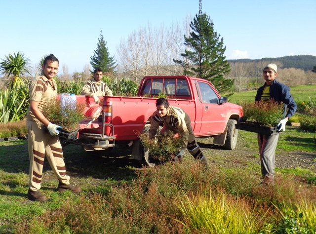 After morning tea the team went to work. As Tom is still out of action, the first task was to load up the truck and take the plants up to the planting site.