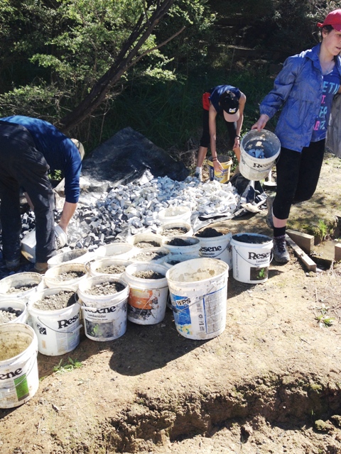 Once all the concrete, builders mix, water and tools were on site the concrete was mixed up in batches.