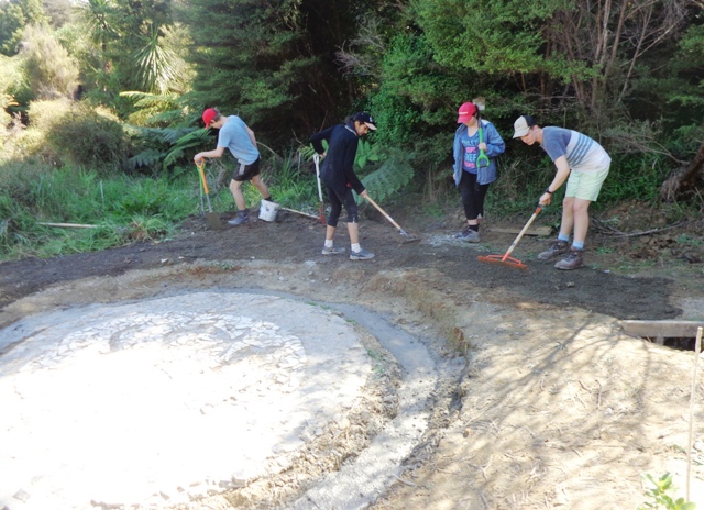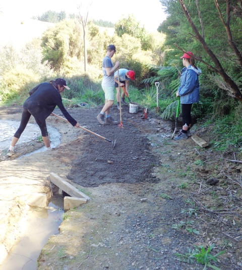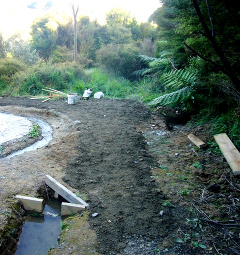 The next task was to construct a path around the mosaic to connect the DoEHA track to the main CUE Haven track.  This involved fixing the drainage and smoothing and clearing the track.