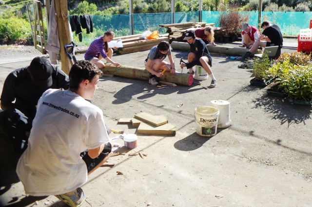 The group had already accomplished everything planned for the week but late on Thursday they decided that they wanted to also leave their mark in the form of benches for the walking track.  They broke into two groups—The A Team and the Z Team!