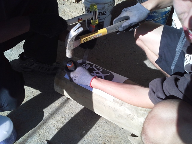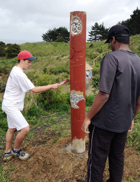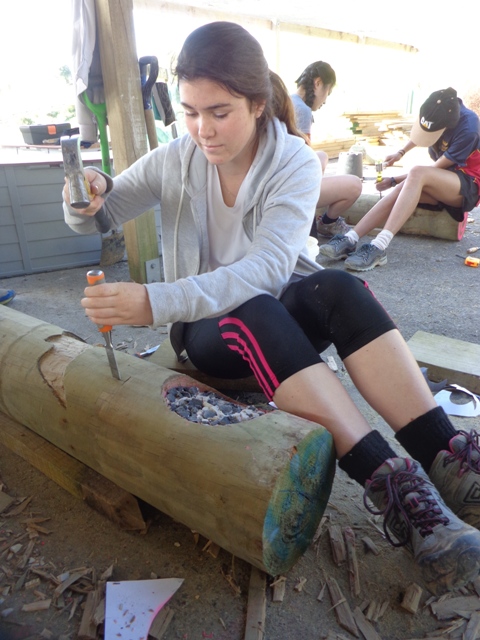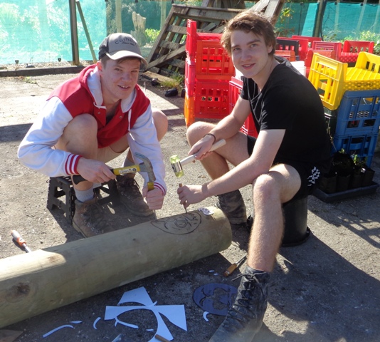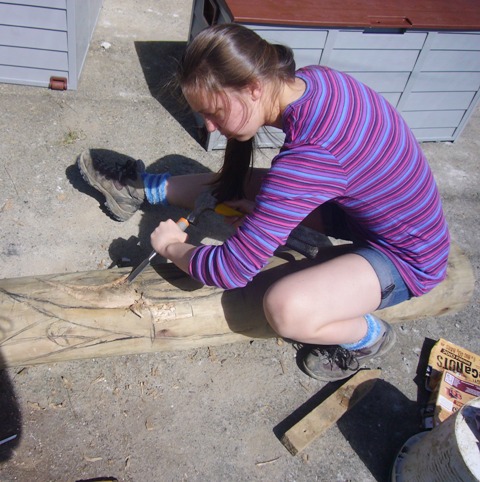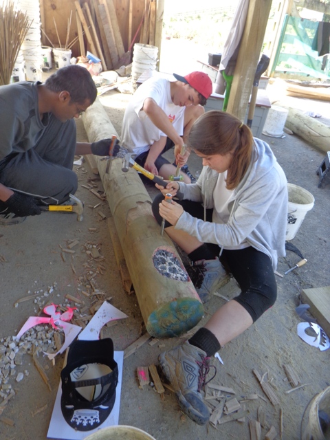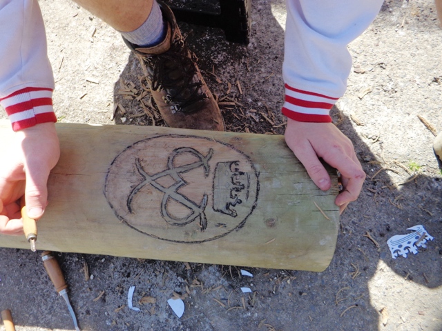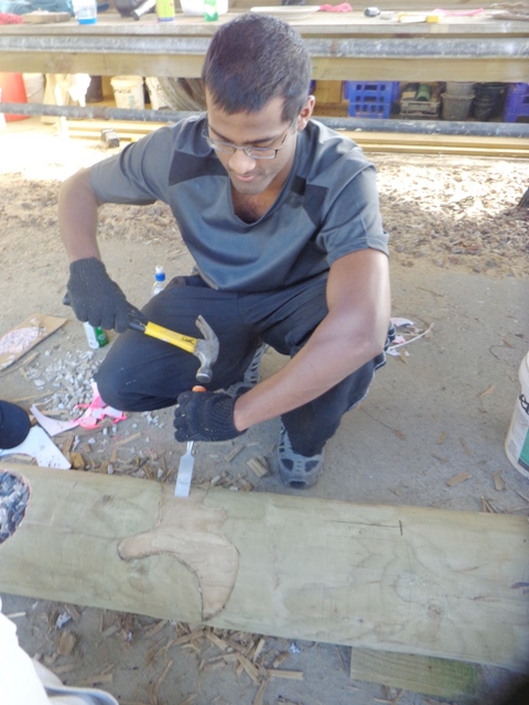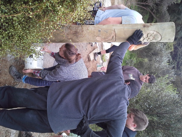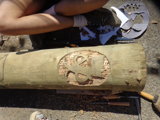 The team also tackled one of the most creative and challenging tasks yet.  There are four main entrances to the DoEHA Grove and in order to mark the entrances and welcome visitors, the team decided to put up carved posts at each entrance.  This team worked on three posts and the other posts will be done by future DoEHA teams.