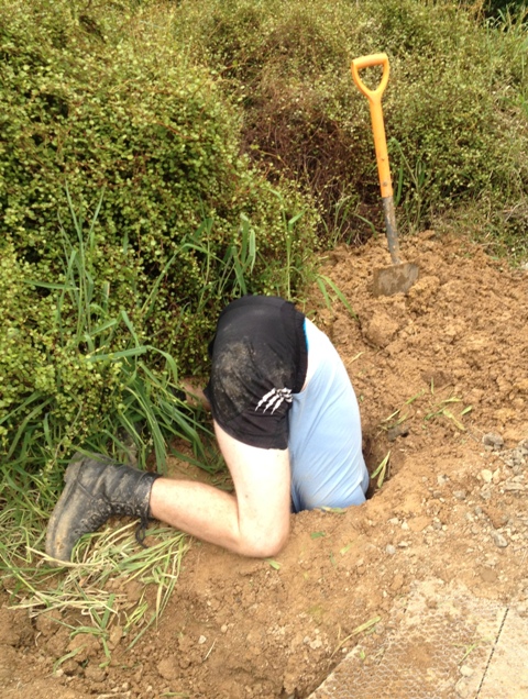 The first thing the team did was dig a drainage ditch to empty the water that had accumulated in the foundation ring.