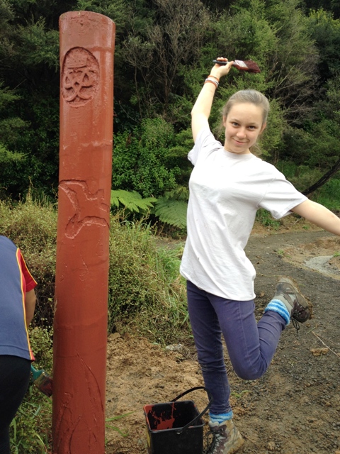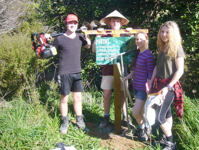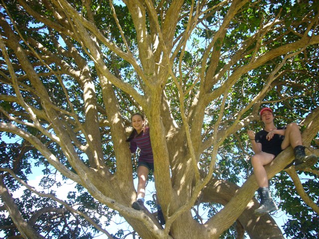 While installing a sign under an old puriri tree some of the group decided that it was just begging to be climbed!